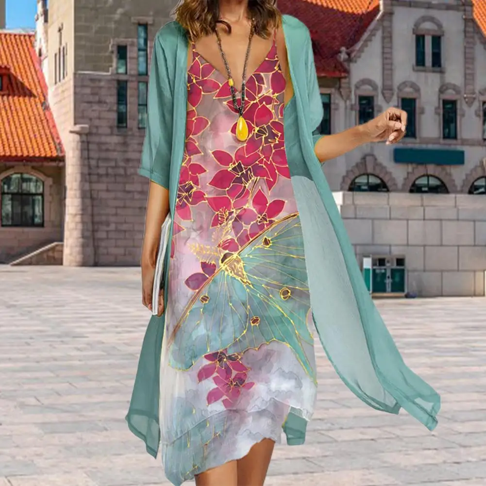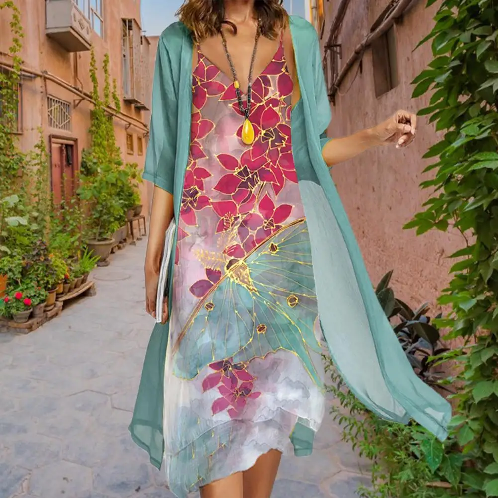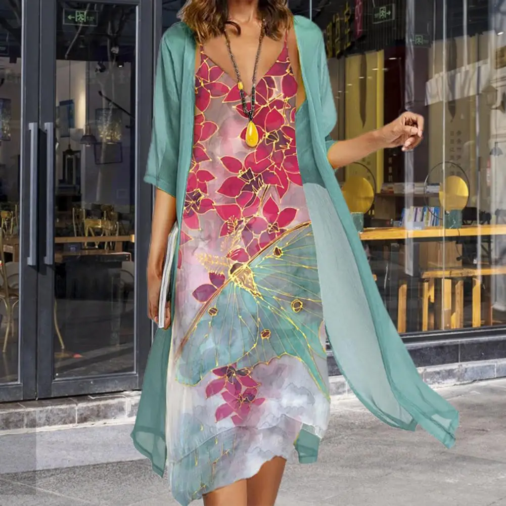 NMoudfTGalLooked for M - 4XL 1 Set Office Lady Cardigan Dress Floral Print Irregular Hem Summer Vintage Chiffon Dress Set for Party for a long time, but could not find it? Bring to your attention M - 4XL 1 Set Office Lady Cardigan Dress Floral Print Irregular Hem Summer Vintage Chiffon Dress Set for Party with the best price!