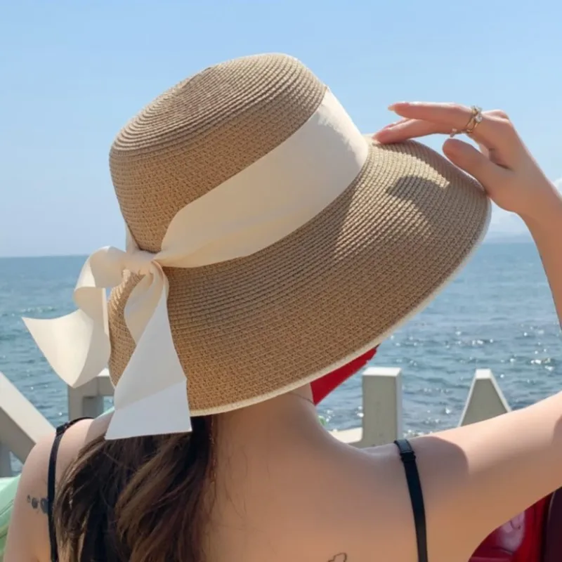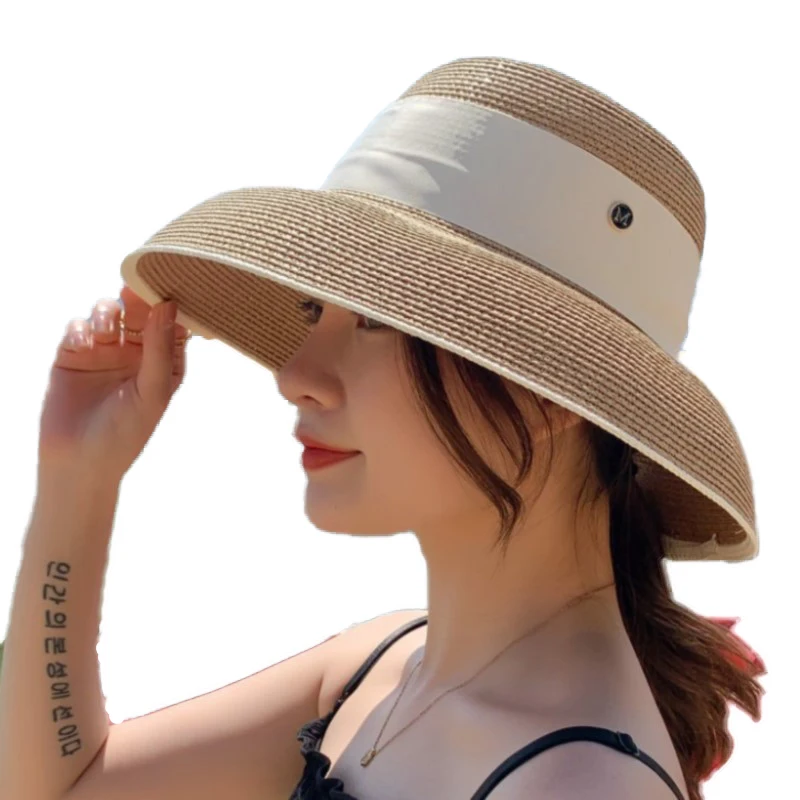 "M Letter Shade Cap Straw Hat Color Matching Bow Knot Fashion French Hepburn Small Fragrant Hat Outdoor Beach Hat" * Buy Now Just For 9$