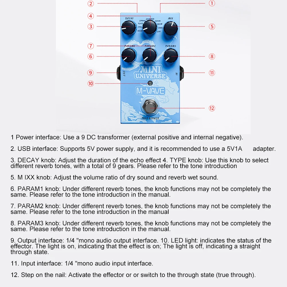 SMHoQORrhzHere you can buy M-vave Mini Universe Digital Reverb Pedal 9 Reverb Isolated Output Anti-interference Effect Pedals Pedal Guitar Parts Accessory with free delivery to your post office.
