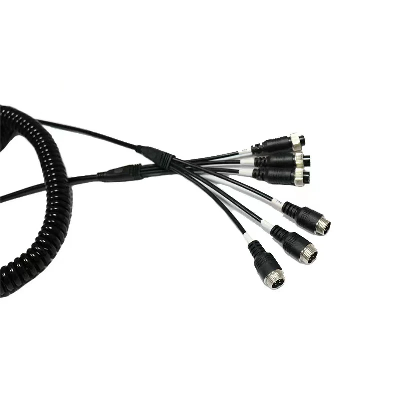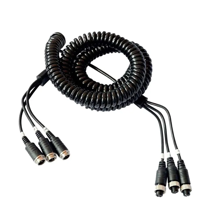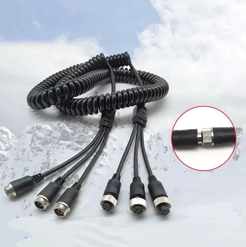 M12 4Pin 3 Male To 3 Female Aviation Spring Line, Car Airline Cable Monitoring Video Extension Wire For Rear View Camera,8M - Купить с бесплатной доставкой