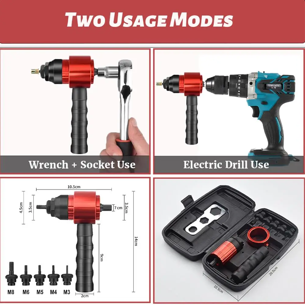 "M3~M8 Electric Rivet Gun Rivet Nut Gun Drill Bit Adapter Insert Nut Pull Riveting Tool, For Electric Drill/Hand Wrench" * Buy Now With Free Shipping Just For $14