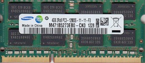 Il Samsung SO-DIMM con numero di riferimento del produttore M471B5273EB0-CK0 con un unbuffered SO-DIMM non-ECC DDR3 1600MHz 204Pin con 4GB di capacità (512Mx64) . È dotato di 16 FBGA(78ball) 256Mx8 DRAM .