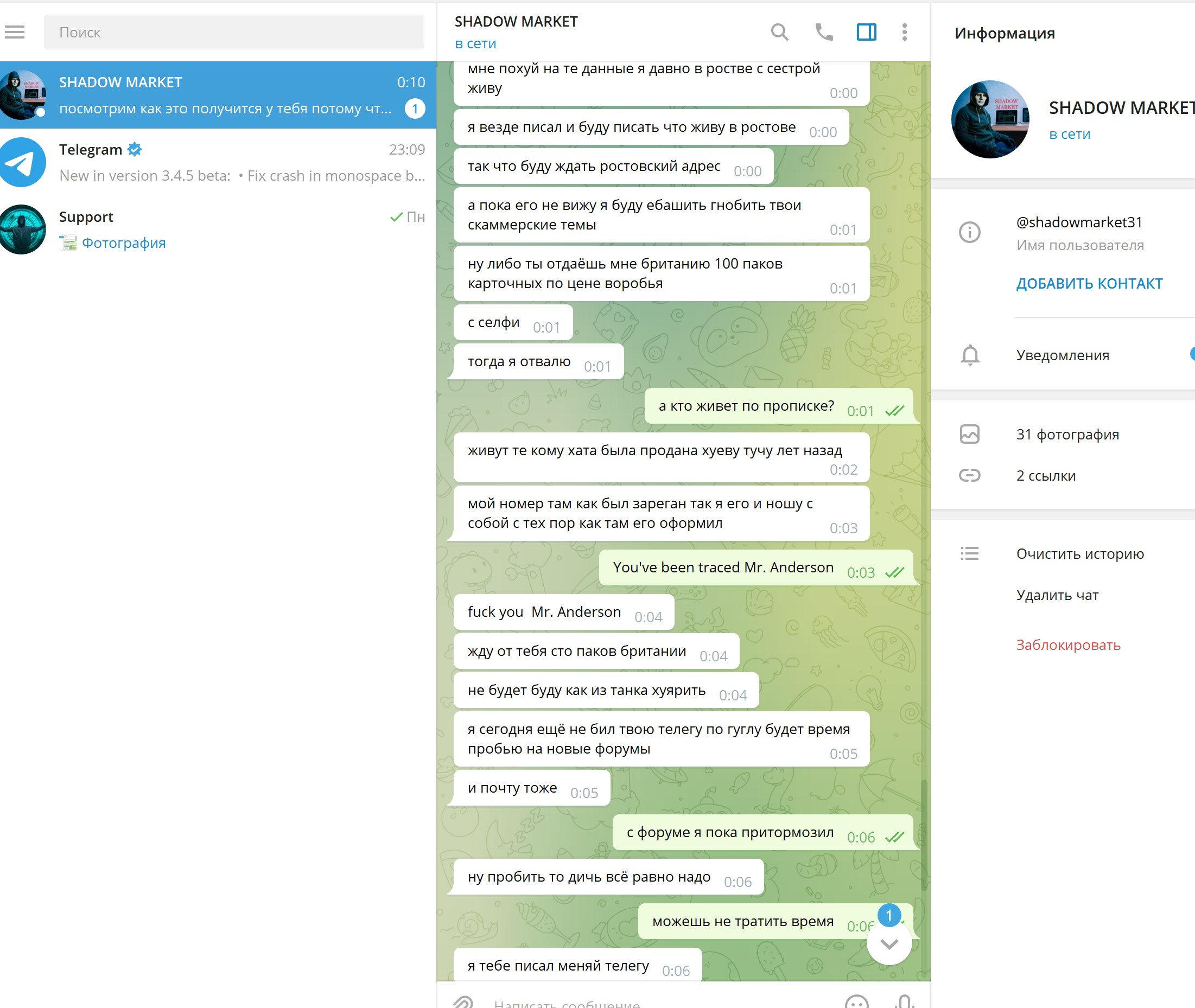 Далее были от него создания вбросов на разных площадках с клеветой на селлеров и АГ форумов что они кидалы и прочее.
