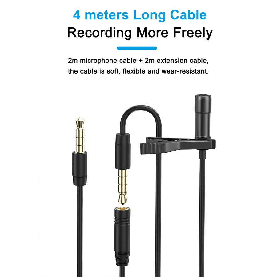 MAMEN 4m Cable Lavalier Microphone Omnidirectional Pickup MIC 3.5mm Audio Plug For Phone Camera Computer Laptop Vlog Recording - Купить с бесплатной доставкой