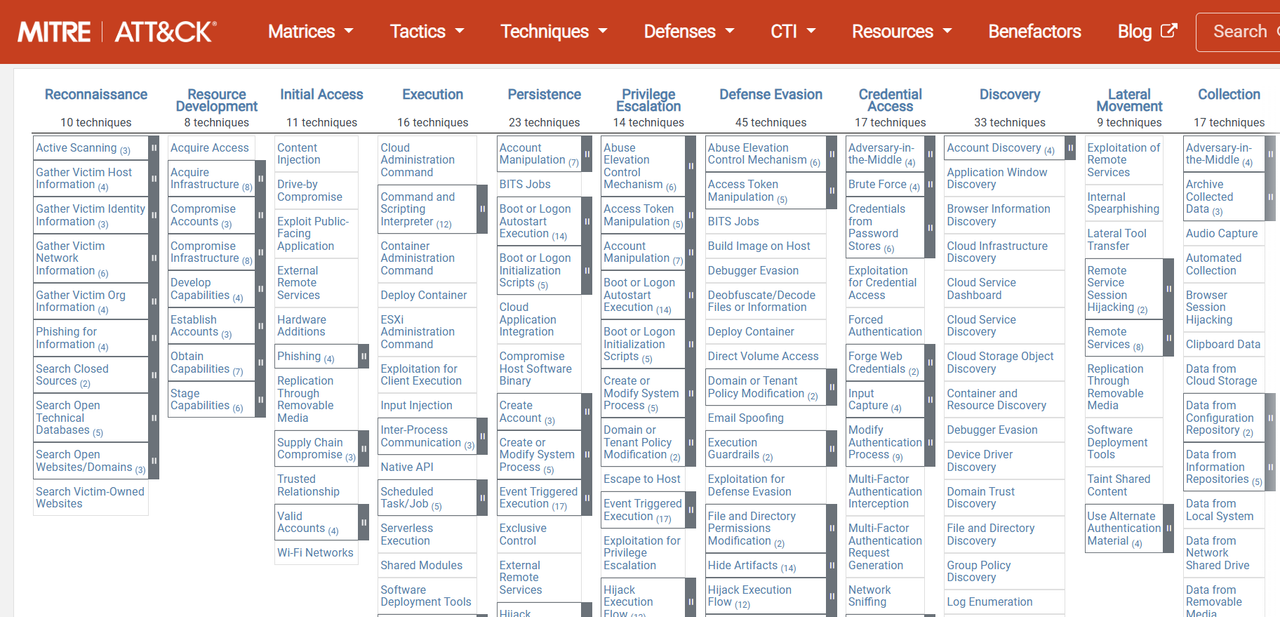 Мы можем очертить стратегию захвата и удержания рынка, изучив матрицу атак/угроз MITRE (https://attack.mitre.org/matrices/enterprise/).
