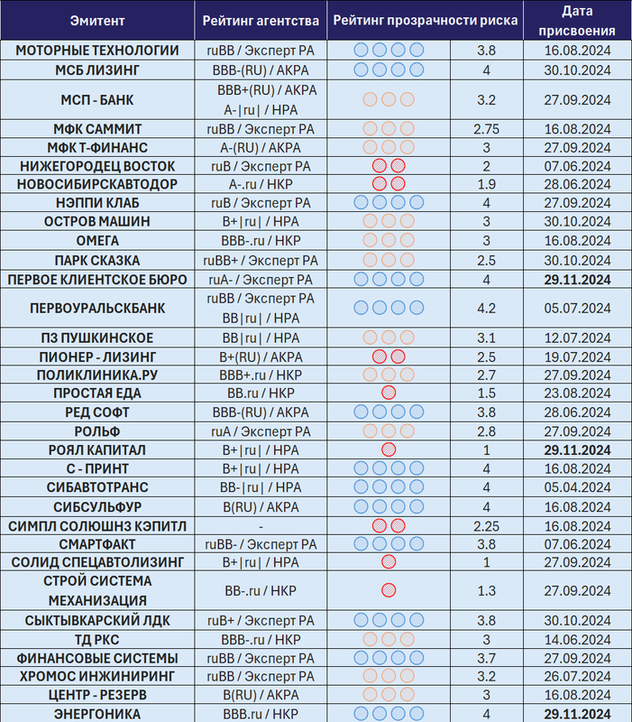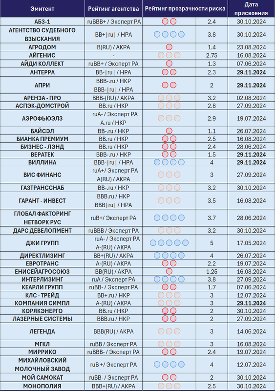 - Рейтинг прозрачности риска эмитентов
