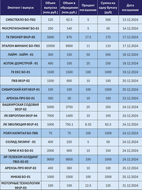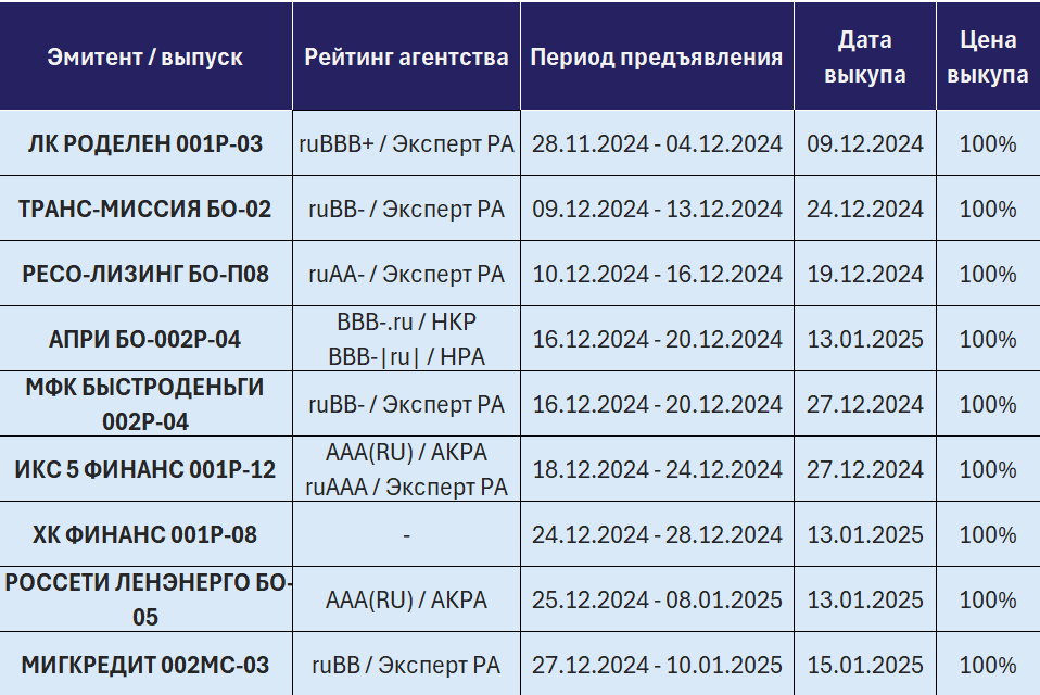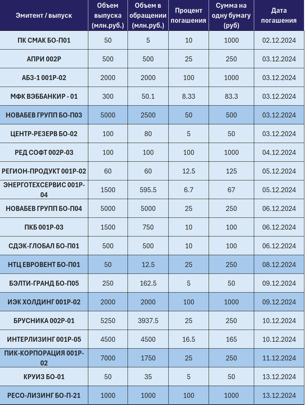 - Погашения, амортизации и оферты предстоящего месяца