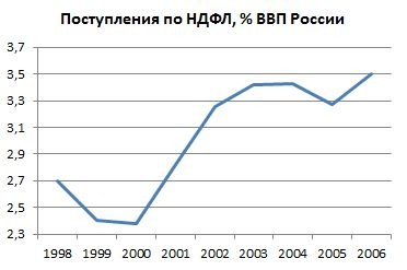 Также, в нулевых правительство РФ провело налоговую реформу. В результате неё общее количество налогов было сокращено в 3 раза, налоговая нагрузка снизилась с 34-35% до 27,5%. Также в 2001 году была отменена прогрессивная шкала подоходного налога и введена единая ставка этого налога в размере 13%.