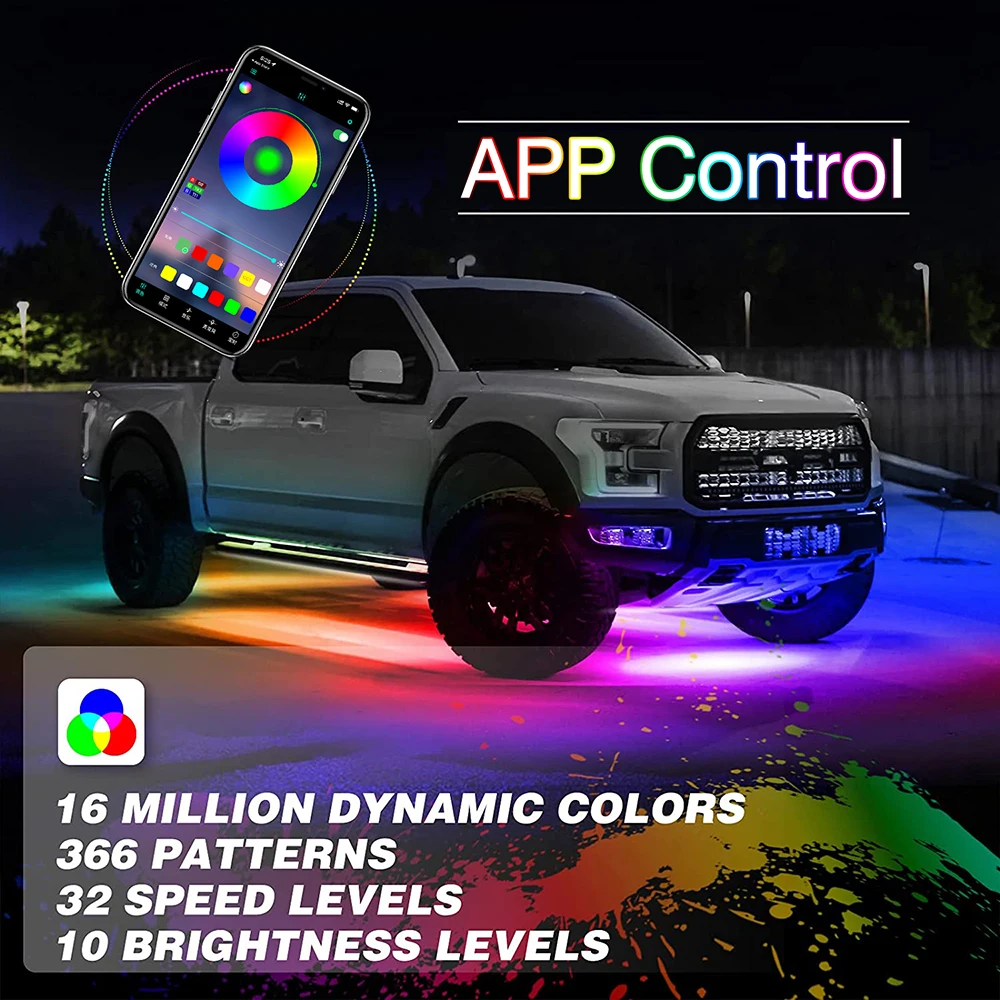 MIHAZ 6Pcs LED Car Underglow Lights Strips Kit RGB Colorful Auto Chassis Car Decorations Ambient Light With App Control 24V - Купить с бесплатной доставкой