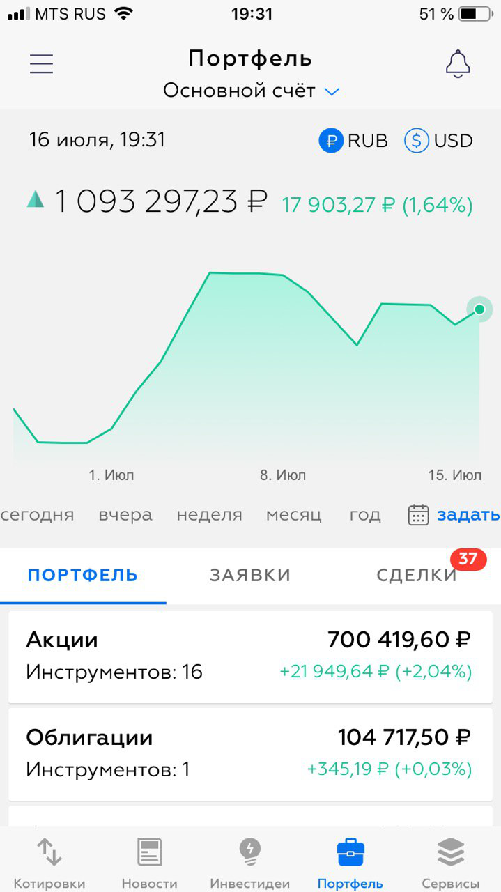 За прошедшие 2 недели мой портфель немного подрос и удерживает высоты: