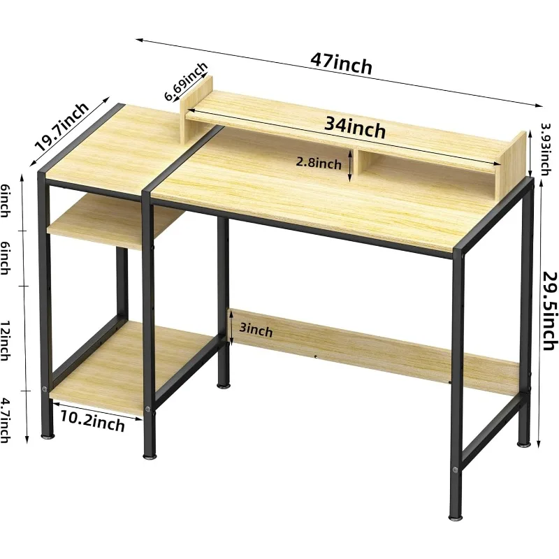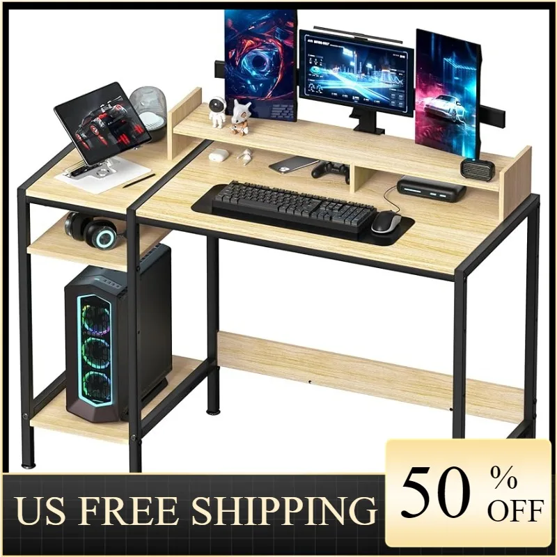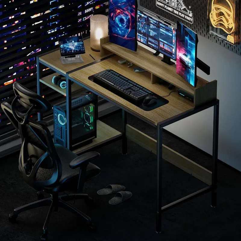"MINOSYS Small Computer Gaming Desk - 47” Home Office Desk with Storage, Monitor Stand for 2 Monitors, Adjustable Storage Space" * Buy Now With Free Shipping Just For $140