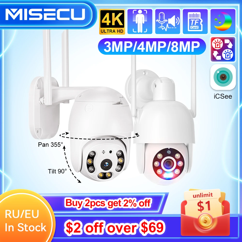 "MISECU WiFi 3MP 4MP 8MP PTZ CCTV Security Camera 4K Outdoor Auto Tracking Two Way Audio Night Vision Video Surveillance Camera" * Buy Now Just For 27$