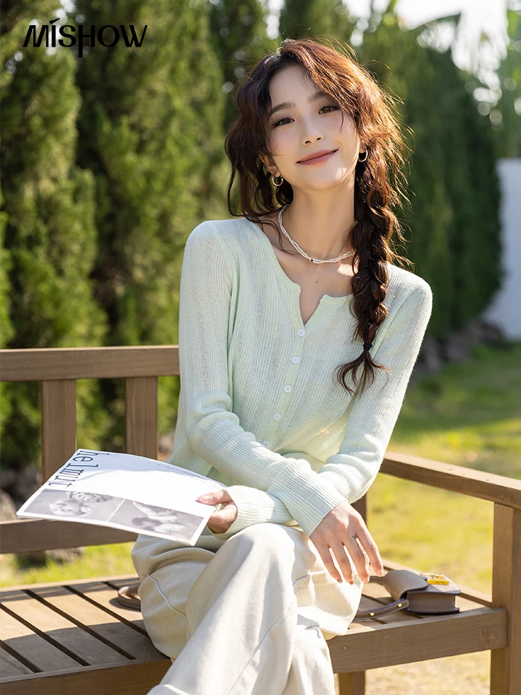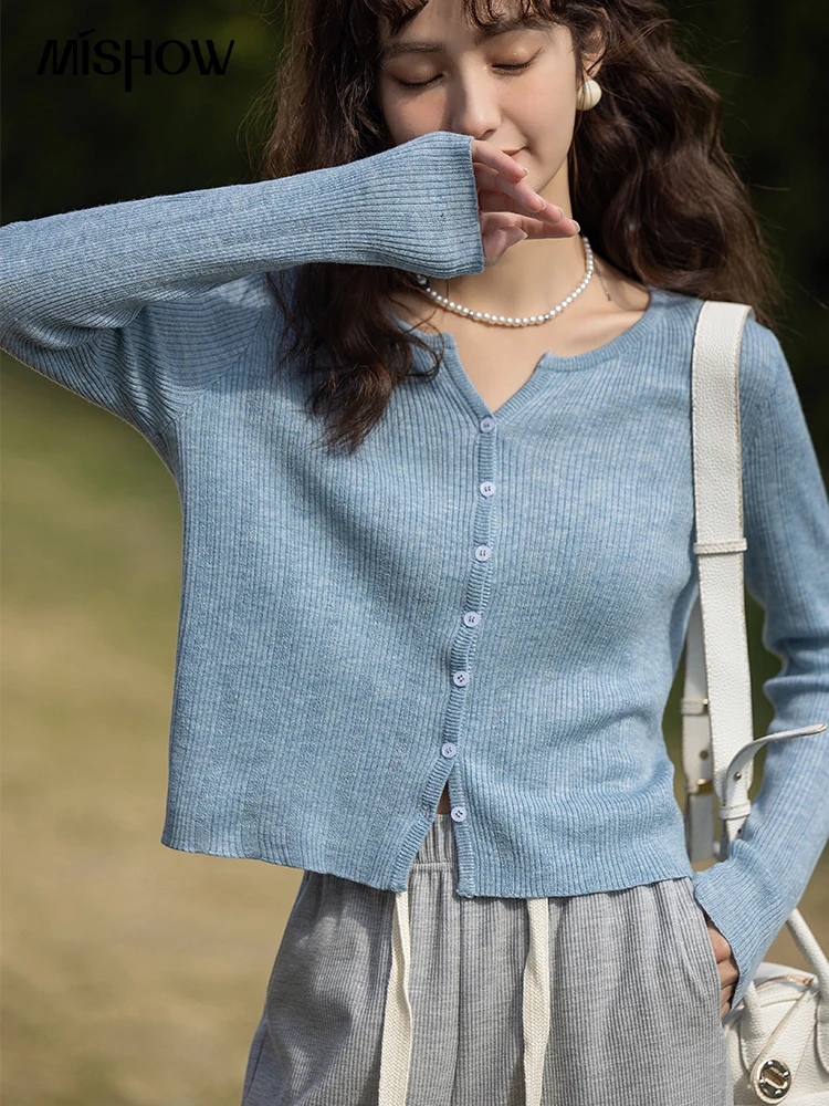 «MISHOW Cardigan for Women 2023 Spring Thin Vneck Short Sweater Single-breasted Knitwears Korean Fashion Solid Tops MXC11Z1266» по лучшей цене на рынке! Всего за 30$ (2850рублей)