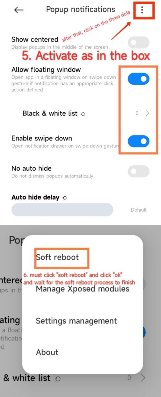 If you want to swipe down from floating notification, install both modules, CustoMIUIzerMod and Plugin. Requirements have installed LSPosed.