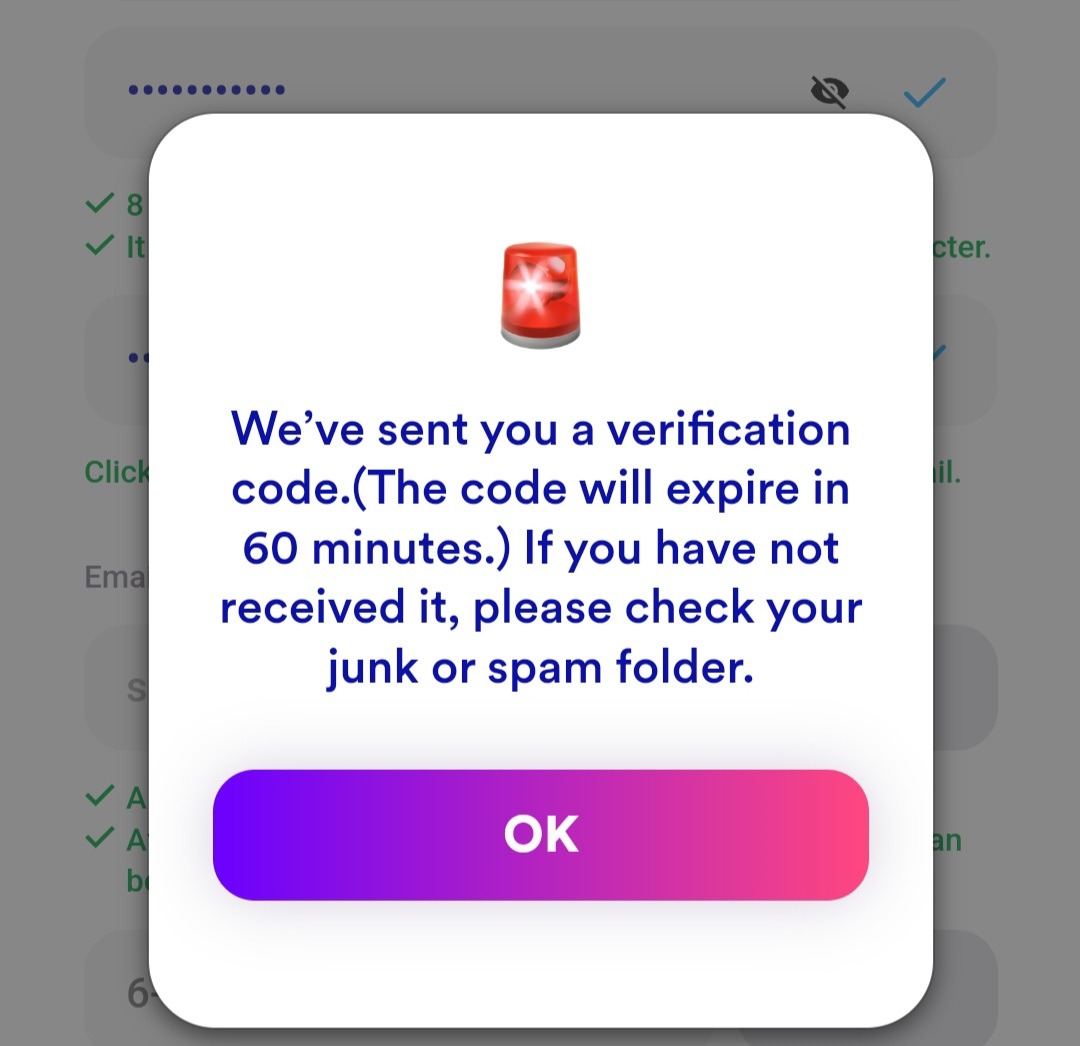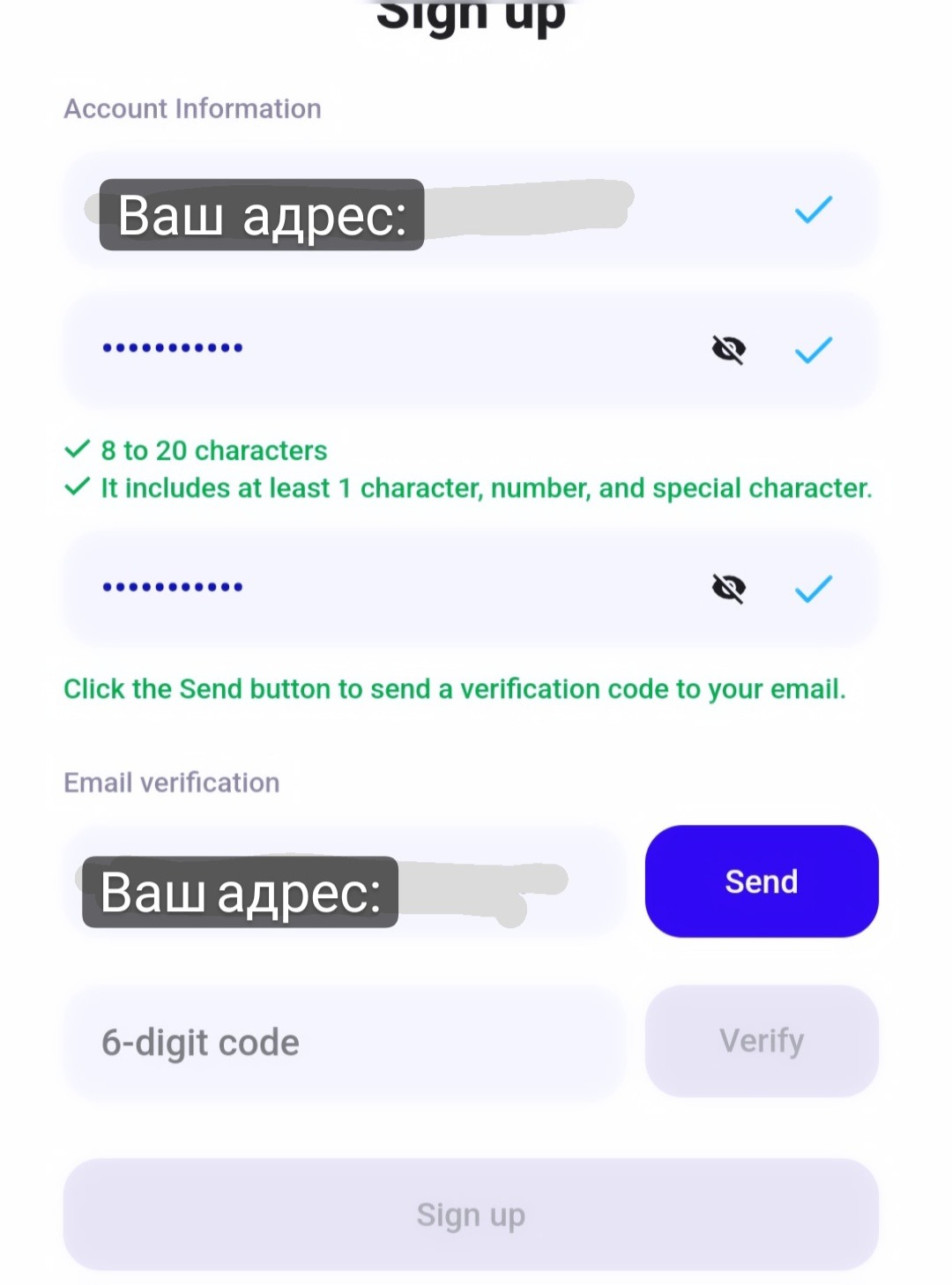 10. Введите 6-значный код и тыкните на «Sign up».