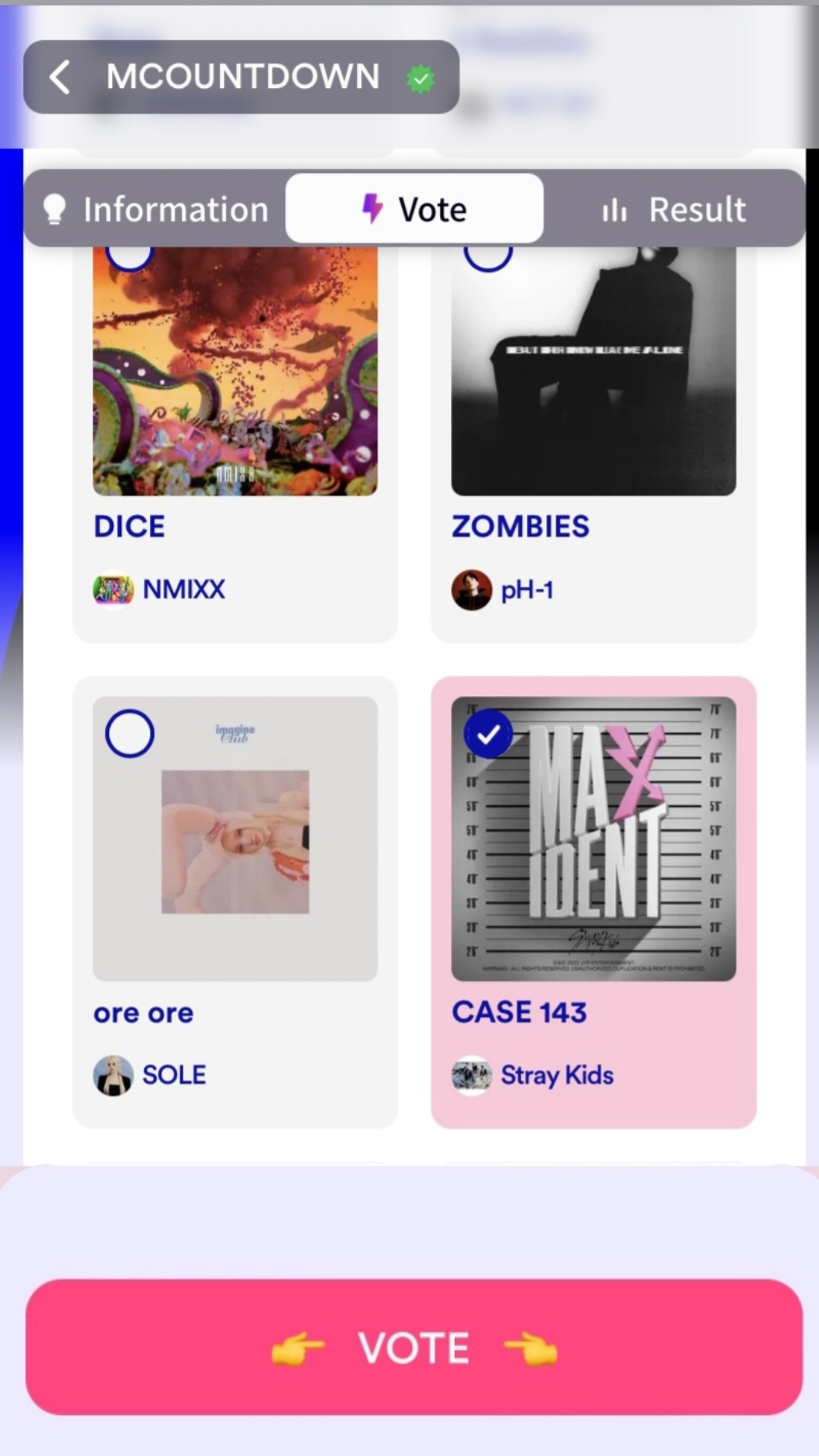 2. Затем переходим во вкладку «Vote» и ищем песню Stray Kids, нажимаем на нее.