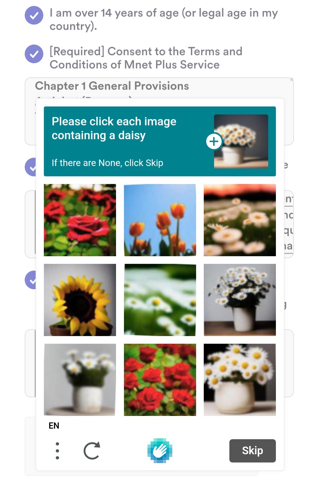 4. После этого вам будет нужно пройти капчу. Внимательно прочитайте и выберите соответствующие картинки.