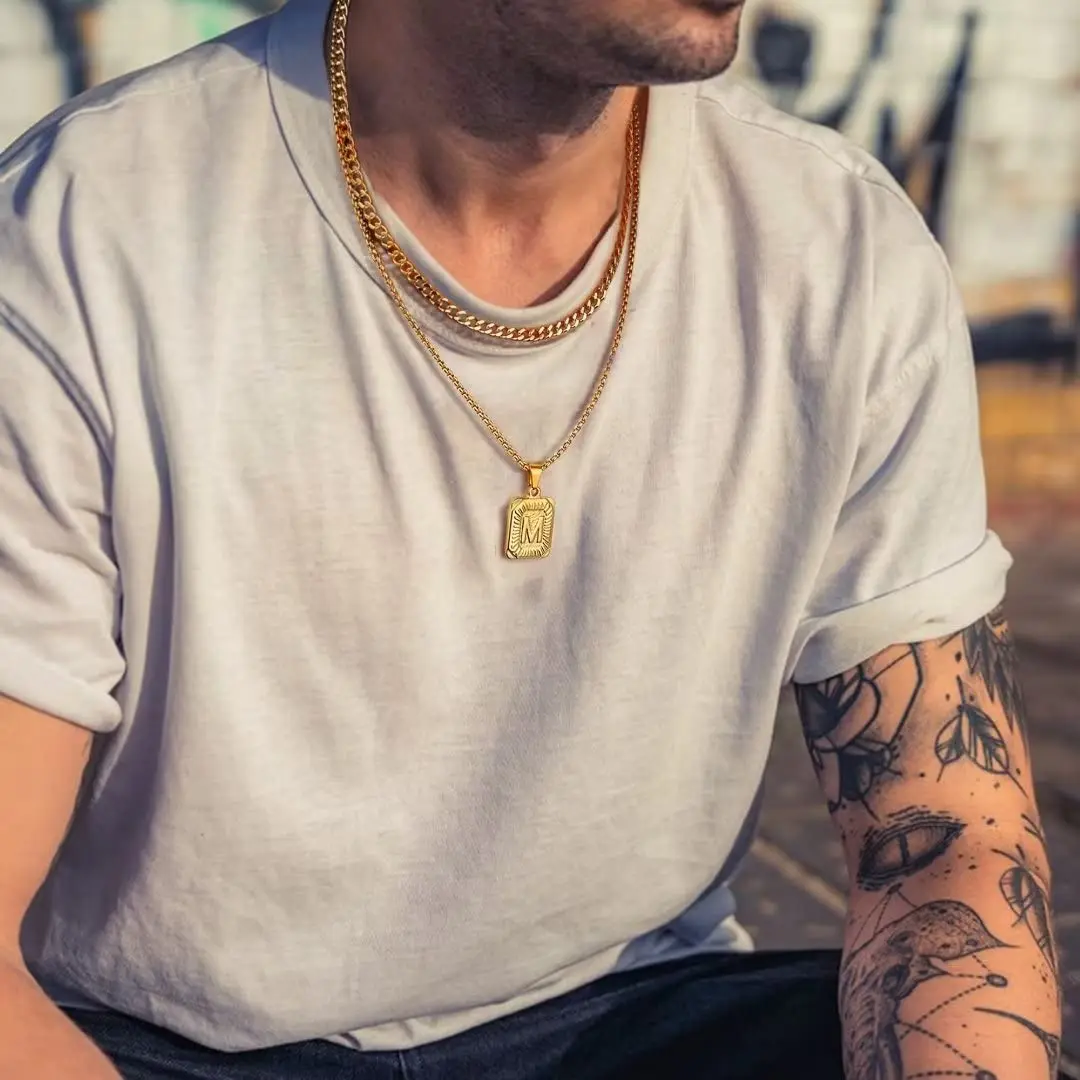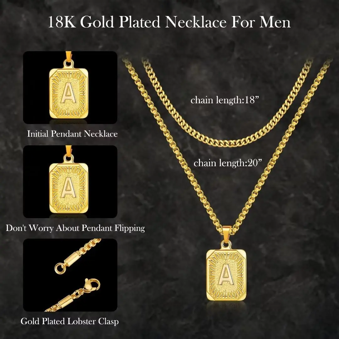 «MONOOC Gold Initial Necklace for Men Women 18K Gold Plated Layered Cuban Chain Box Chain 18-20 Inch Square Pendant Jewelry Gift» по лучшей цене на рынке! Всего за 9$ (855рублей)