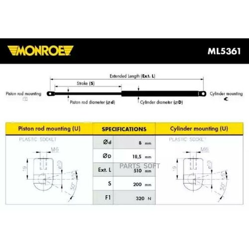 MONROE ML5361 Amortisseur de capot VOLVO XC90 02-> MONROE ML5361