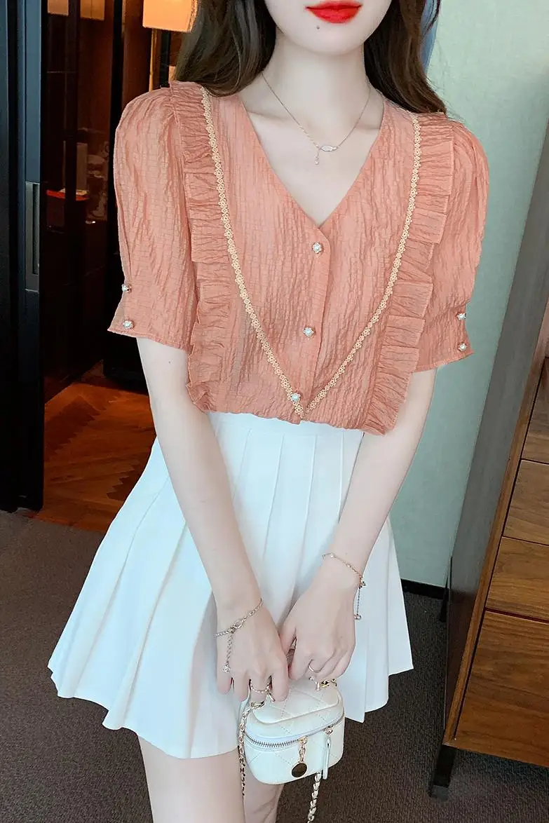 Womens New Summer Short Sleeve Pajama Set Sweet Cotton Loungewear Comfortable for Outdoor Wear Two Piece Ensemble Kupit s besp 02 07