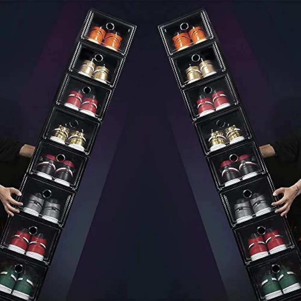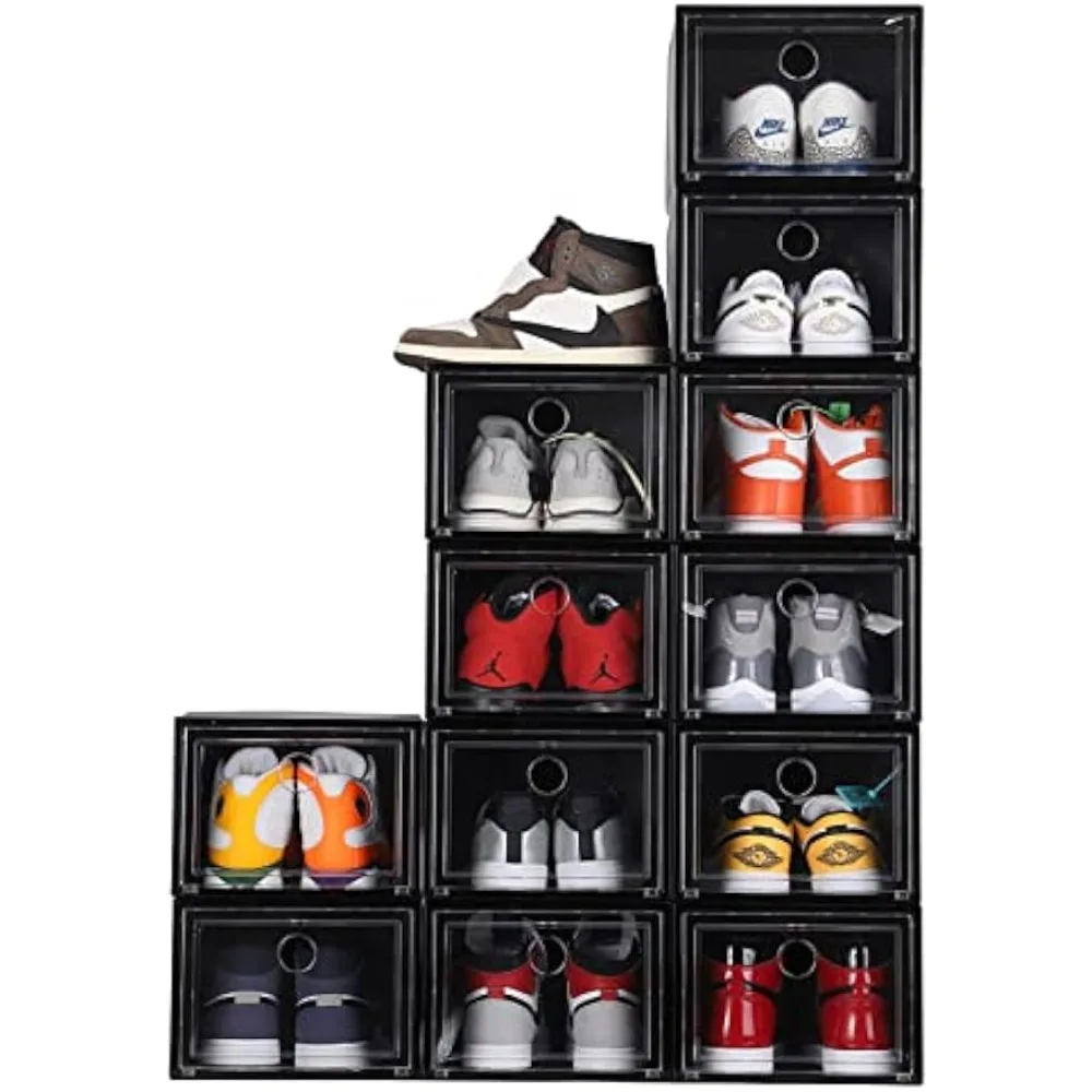 MUKIRAN HOME 12 Pack Shoe Storage Boxes, Shoe Box Clear Plastic Stackable, Drawer Type Front Opening Shoe Holder Containers - Купить с бесплатной доставкой