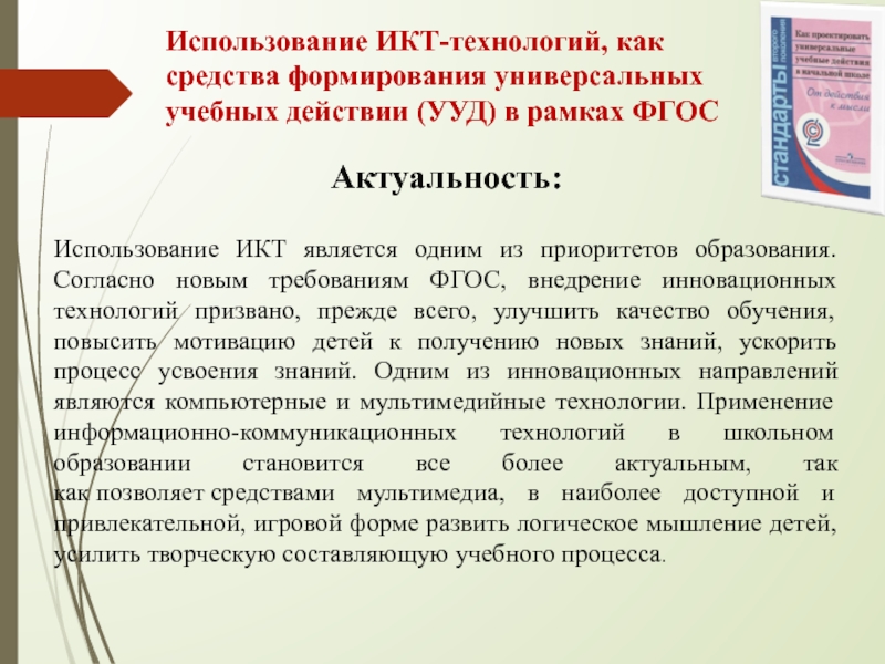 В современном образовании очень важными и актуальными становятся вопросы о методах, приемах, технологиях организации образовательной деятельности, направленных на применение мультимедиа .