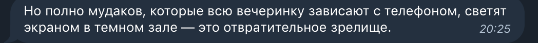 - Общее НАСТРОЕНИЕ, такое, какой-то нахуй никому не нужный лишний пафос, мало веселья, там не снимай на видео на танцполе, тут не чатиться, здесь не кури, там пиво убери, танцевать, то хоть можно на танцполе?! Большинство ищут говна, половина уже на 3-х сутках, злые как собаки, ладно это наверное после Питера так кажется, будем наблюдать;