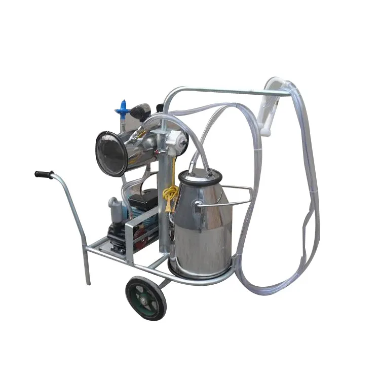 Actually such small milking machine is ideal for dairy farms with around or less than 10 cows . Individual milking machines have a tank attached to it with 4 suckers for attaching to the teats . And the machine acts almost like a vacuum cleaner . It creates a vacuum on the teats that actively collect the milk .
