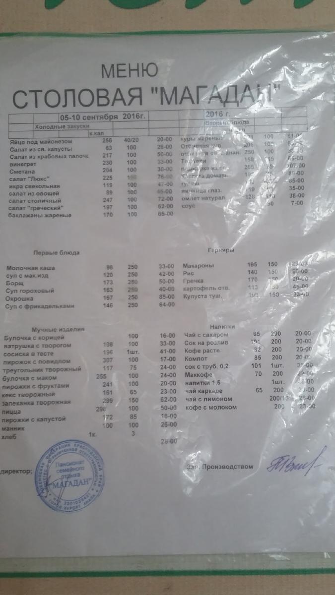 Магадан краснодар меню