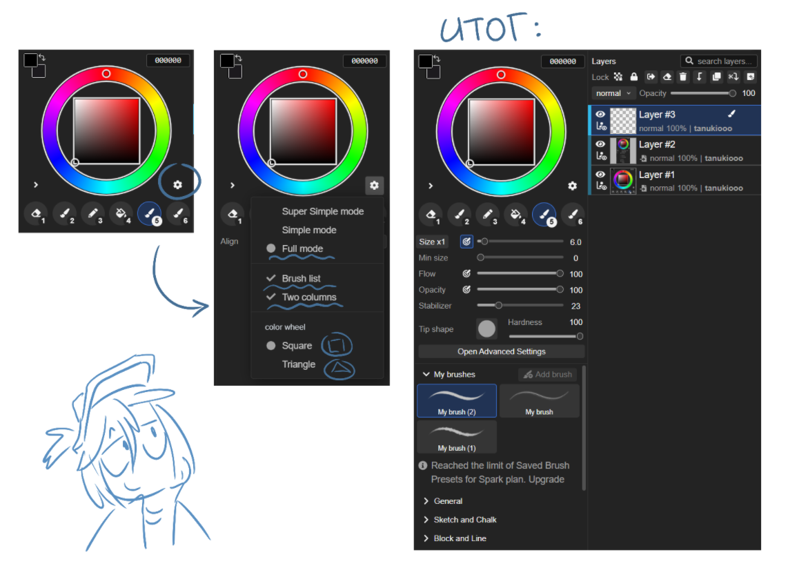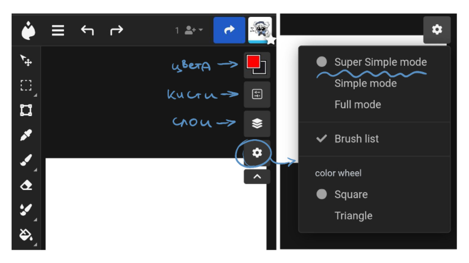 Юзерам телефонов настоятельно рекомендую оставить супер симпл мод, так у вас все плашечки будут скрыты и не будут мешать рисовать.