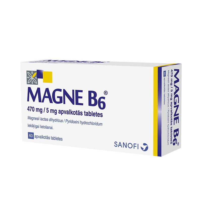 МАГНЕ B6 таблетки * 60 САНОФИ ЛИСТОВКА: ИНФОРМАЦИЯ ЗА ПОТРЕБИТЕЛЯ МАГНЕ B6 470 mg / 5 mg обвити таблетки MAGNE В6 470 mg / 5 mg coated tablets Магнезиев лактат дихидрат (Magnesium lactate dihydrate) Пиридоксинов хидрохлорид (Pyridoxine hydrochloride)