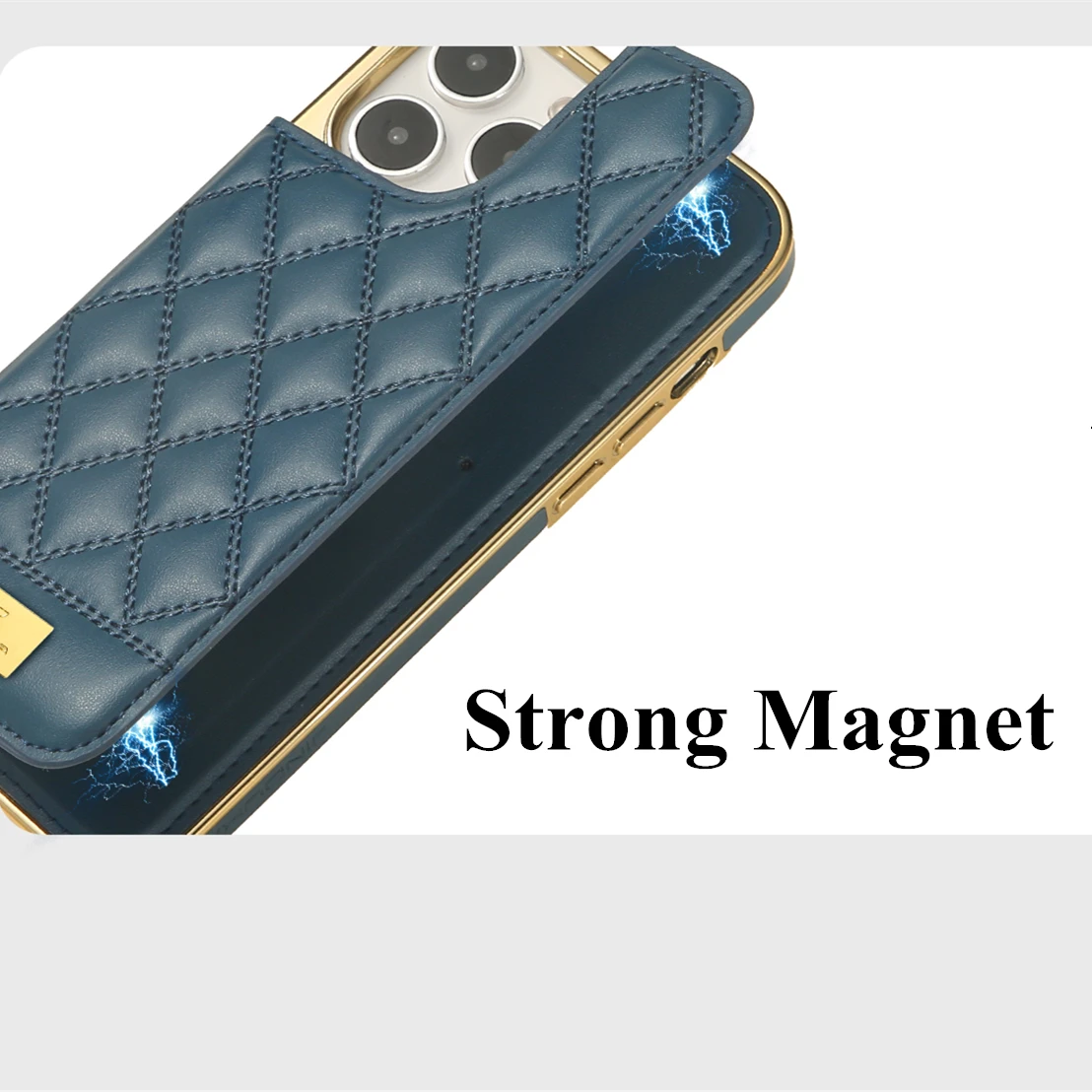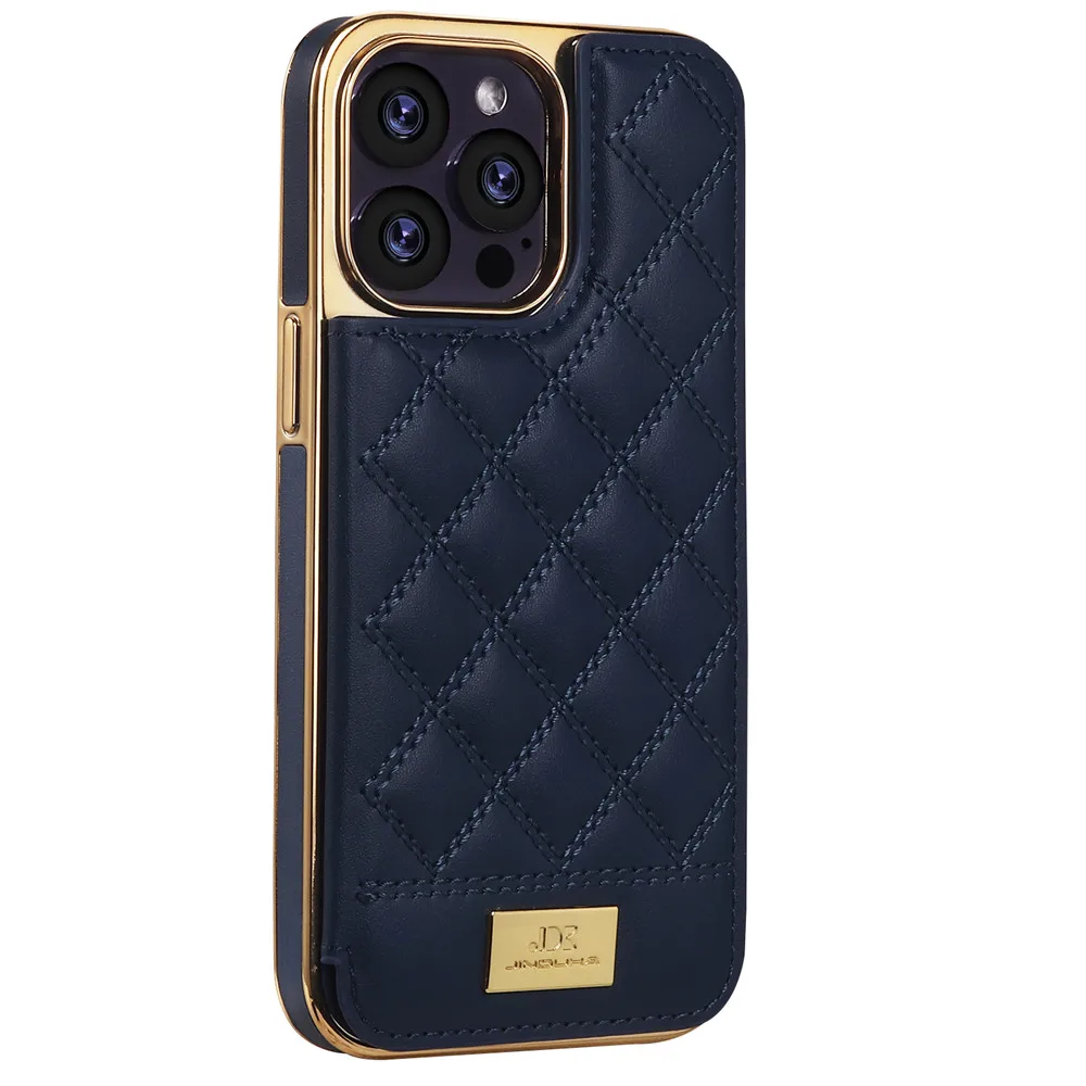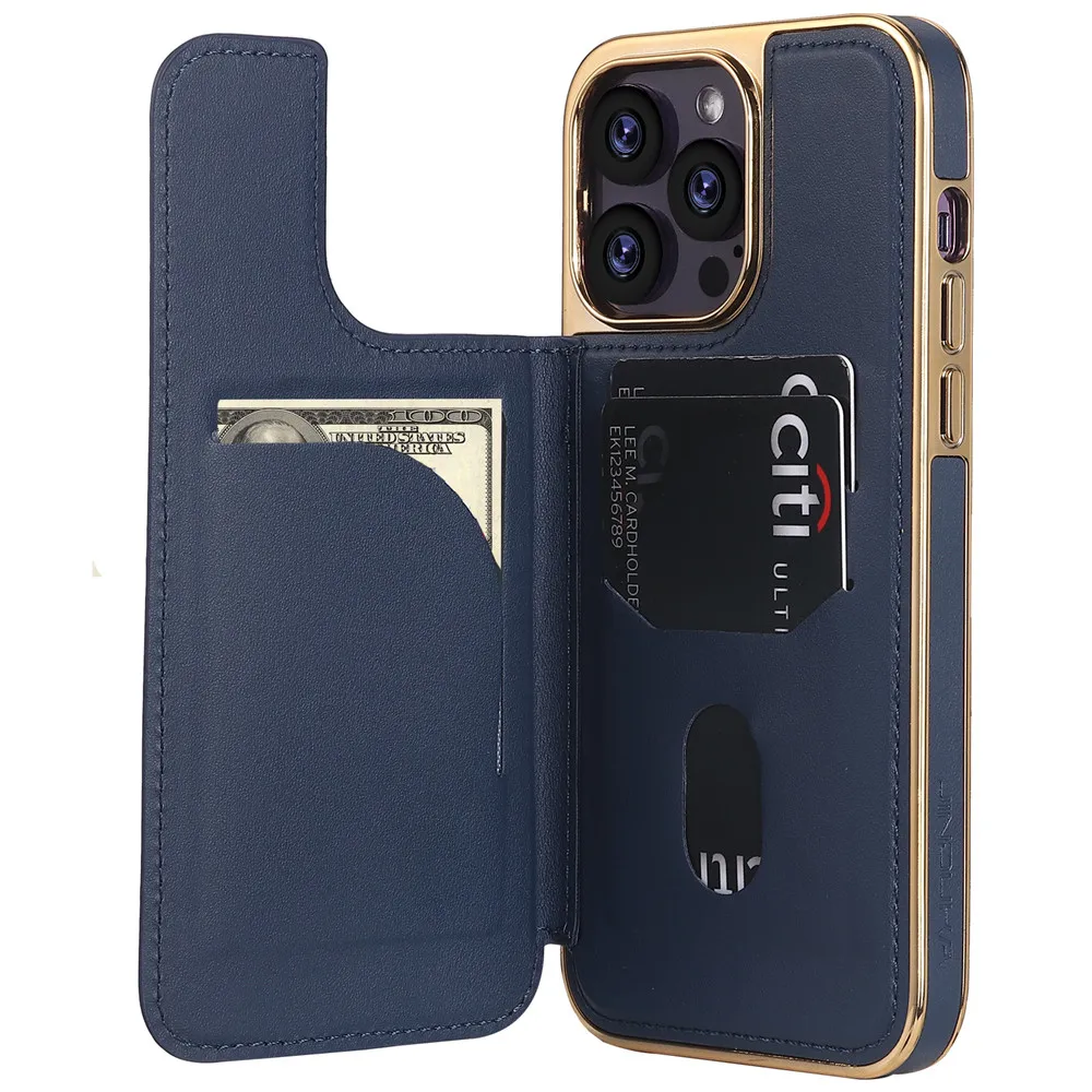 Magnetic Leather Wallet Case For iPhone 12 13 14 Pro Max 14Plus Shockproof High-end Gold Plating Grid Pattern Card Slots Cover - Купить с бесплатной доставкой
