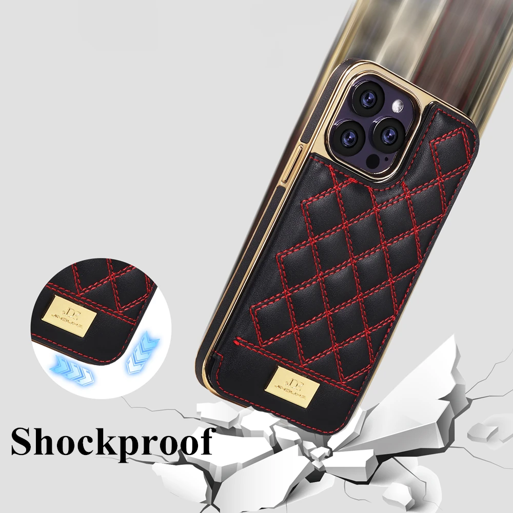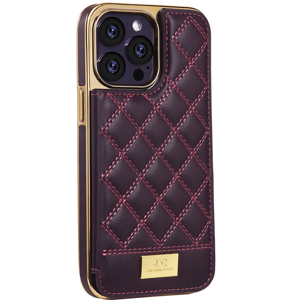 Magnetic Leather Wallet Case For iPhone 12 13 14 Pro Max 14Plus Shockproof High-end Gold Plating Grid Pattern Card Slots Cover - Купить с бесплатной доставкой