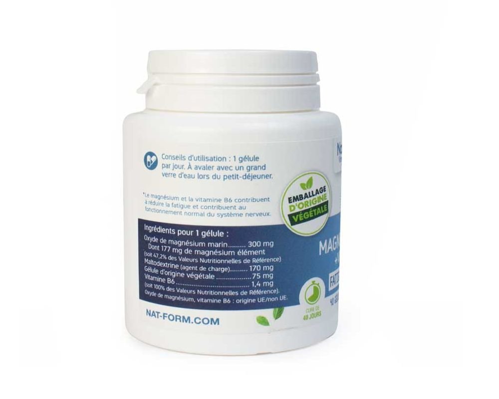 1 капсула съдържа: Магнезий (натурален морски) . . . . .250mg . Витамин B6 . . . . . . . . . . . . . . . . . . . . . . . . . . . . . . . . . . .5mg . Витамин В12 . . . . . . . . . . . . . . . . . . . . . . . . . . . . . . . .2,5μg . Дозировка: 1 капсула на ден, след хранене, с достатъчно количество вода . Предупреждения: Лайф формула Морски магнезий + В 6 + В12 е хранителна добавка .