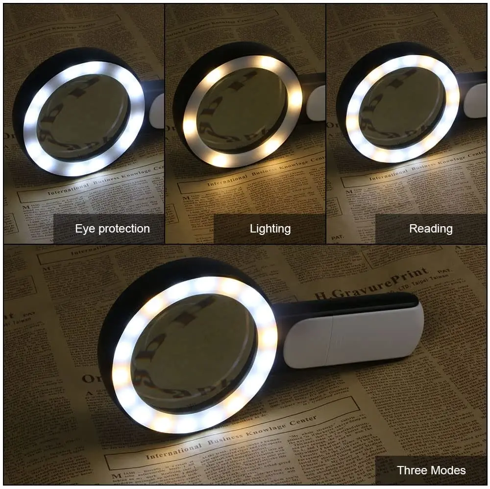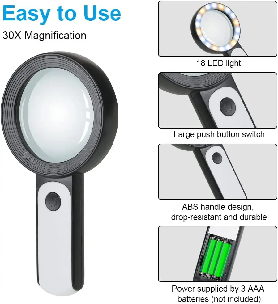 NHBMReYyeiHere you can buy Magnifying Glass 18 LED Lights 30X Double Glass 3 Modes High Power Lens Handheld Illuminated Magnifier Reading Magnifying Glass with free delivery to your post office.