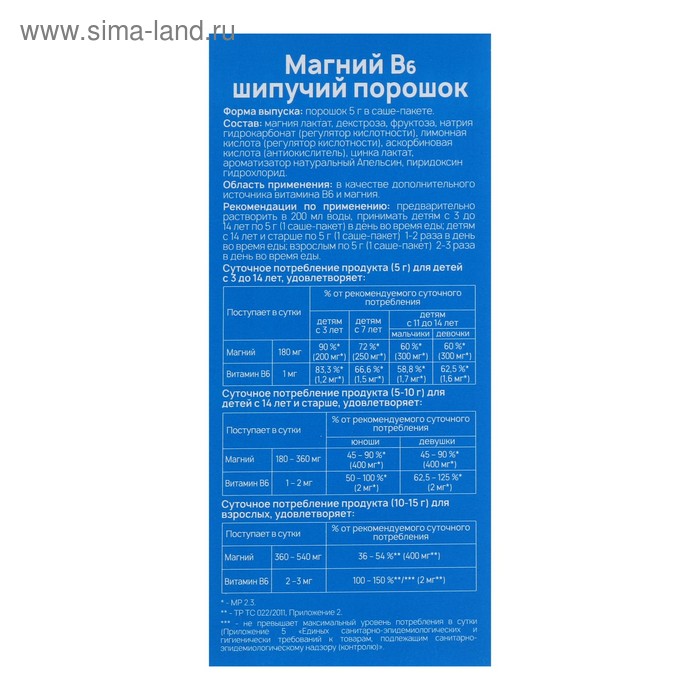 Купить Магний В 6 , шипучий порошок, 10 пакетиков по 5 гр с бесплатной доставкой за сутки на маркетплейсе KazanExpress . Отзывы, описание, характеристики, фото товара .