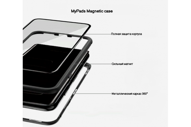 Чехлы для Samsung Galaxy Note 10+ Plus . Магнитный чехол бампер MyPads «Vetro magnete» из закаленного стекла и металла для Samsung Galaxy Note 10+ Plus с двухсторонней прозрачной крышкой металлический защитный противоударный черный .