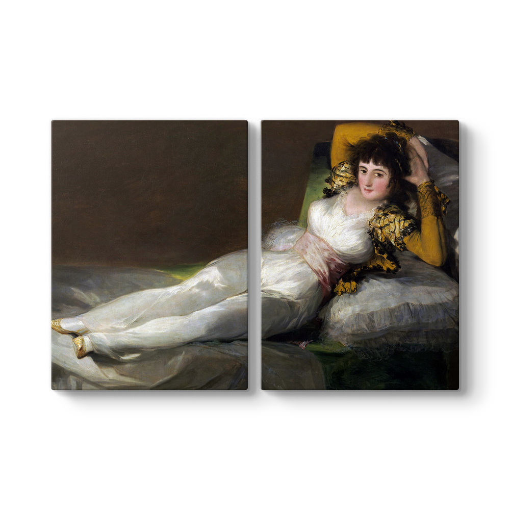 Есть сведения, что изображенная на картине дама могла быть любовницей самого живописца – герцогиней Альбой, оказывающей ему покровительство. Впрочем, доказать это так и не удалось. Гораздо более вероятной кажется версия, что перед нами Пепита Тудо – любовница заказавшего портреты Мануэля Годоя, впоследствии ставшая его женой.