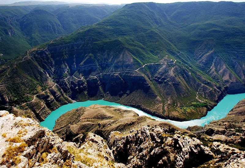 Махачкала — Сарыкум — Сулакский каньон — . . . и в ней красиво отражаются горы . Ущелье близ аула Карадах называют «воротами чудес» . . . . В материале использованы фото: shutterstock, wikimedia .org, drive2 .ru . . .