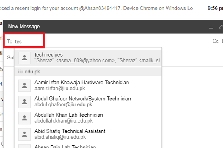Mailing list gmail
