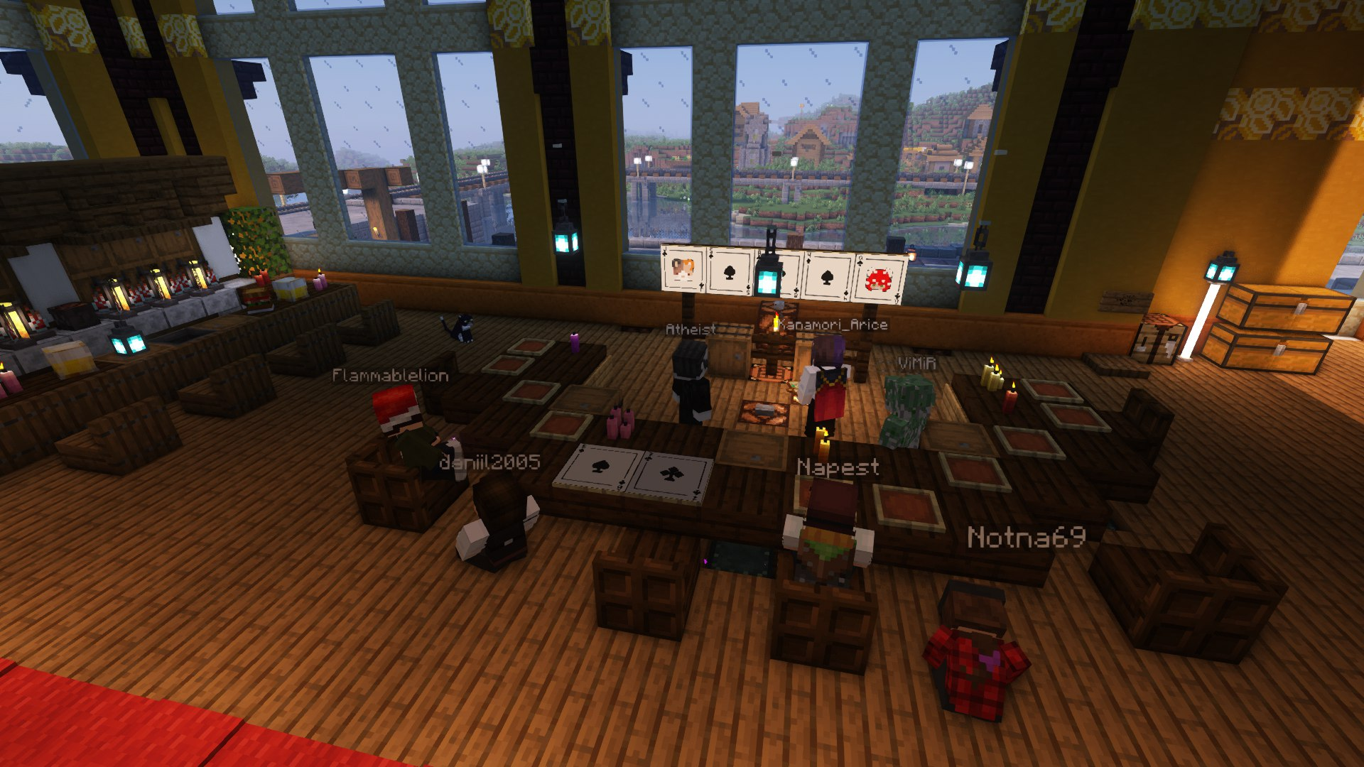 Помимо спавна, некоторые неравнодушные игроки украсили свои города и базы. Например, город Хайтани руками игрока Osoriyon обзавёлся своей новогодней ёлочкой, снегом и тематически обустроенным порталом в Верхнем Незере.