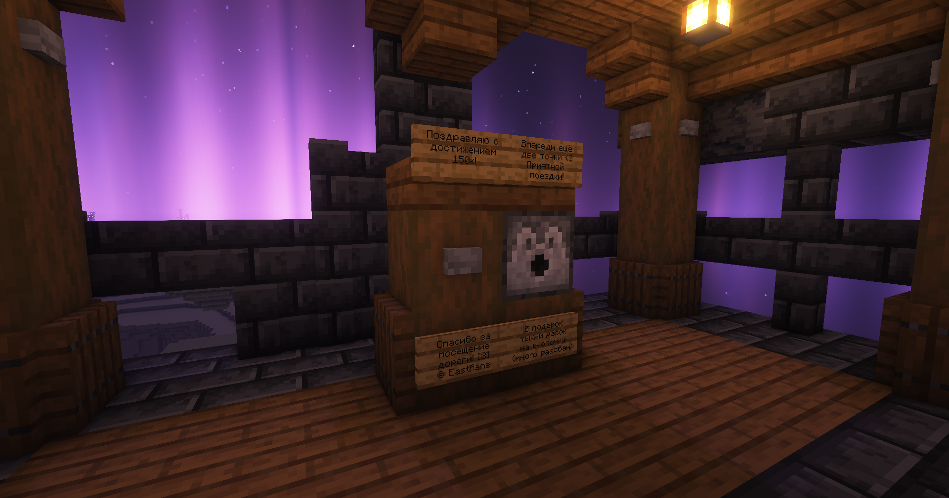 Из самого интересного были построены совершенно новые, уникальные и интересные чекпоинты на важных координатах, на которых игроки могут оставить свои памятные таблички. Например, на 100k можно увидеть самое популярное словосочетания всея MainSMP, а на 150k — мини-Некоград и очень много интересных пасхальных табличек.