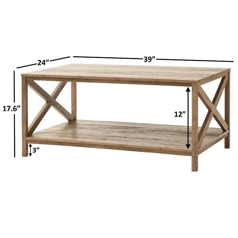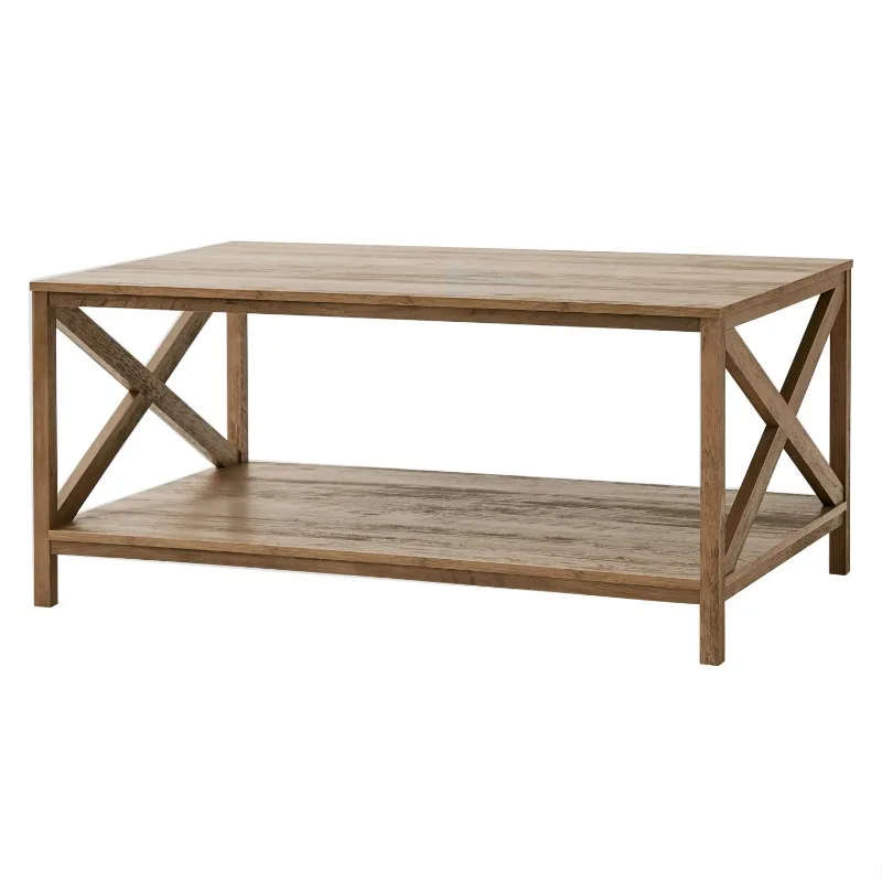 "Mainstays Farmhouse X Design Rectangle Coffee Table, Rustic Weathered Oak" * Buy Now With Free Shipping Just For $45