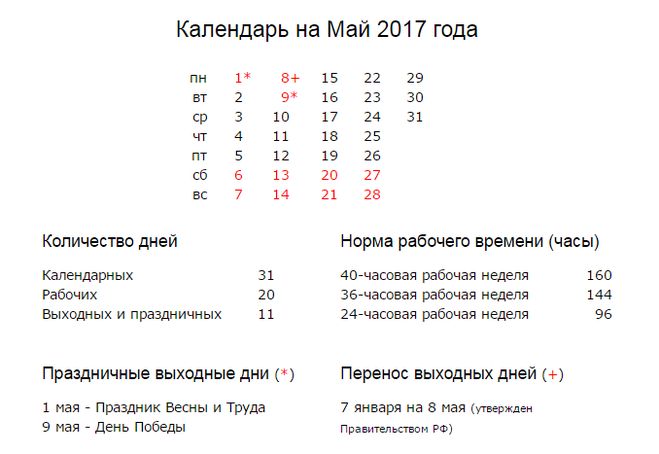 Май кол во дней