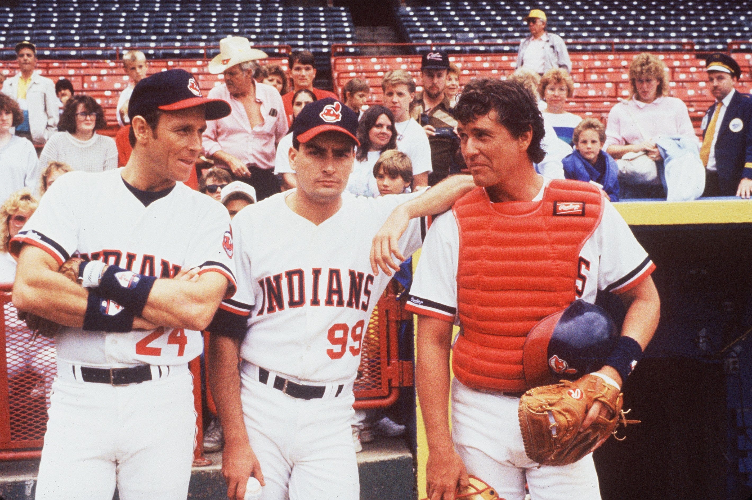 Directed by David S . Ward . With Tom Berenger, Charlie Sheen, Corbin Bernsen, Margaret Whitton . The new owner of the Cleveland Indians puts together a purposely horrible team so they'll lose and she can move the team . But when the plot is uncovered, they start winning just to spite her .