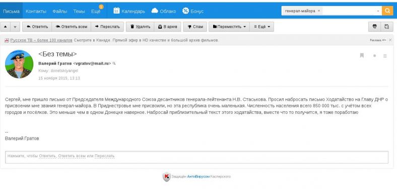 Майору приходит писем