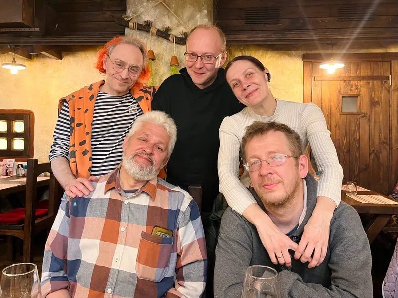 А вот весенние писатели-фантасты — Тимур Максютов, чета Владимирских, Дима Колодан, Катя Бачило (не видна, поскольку фотографирует):