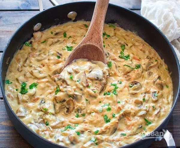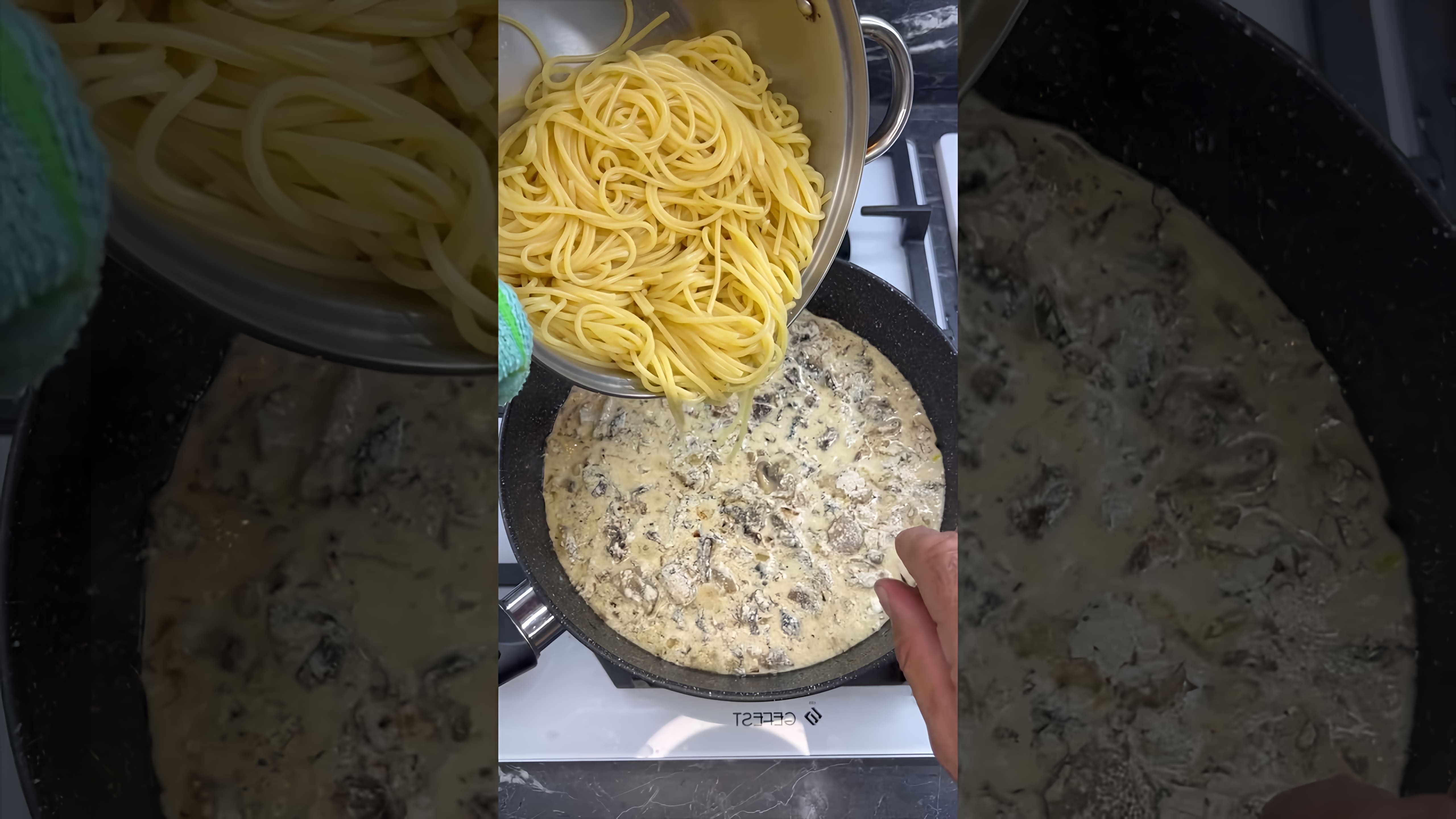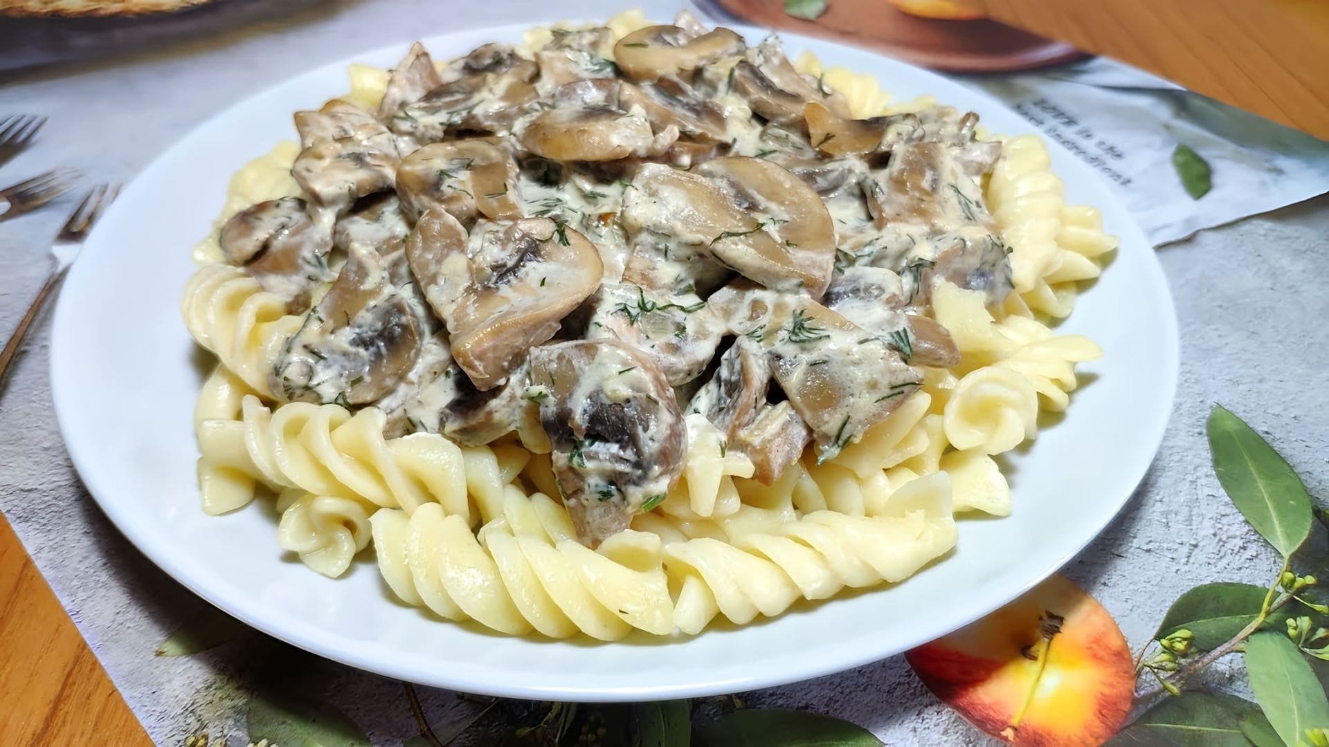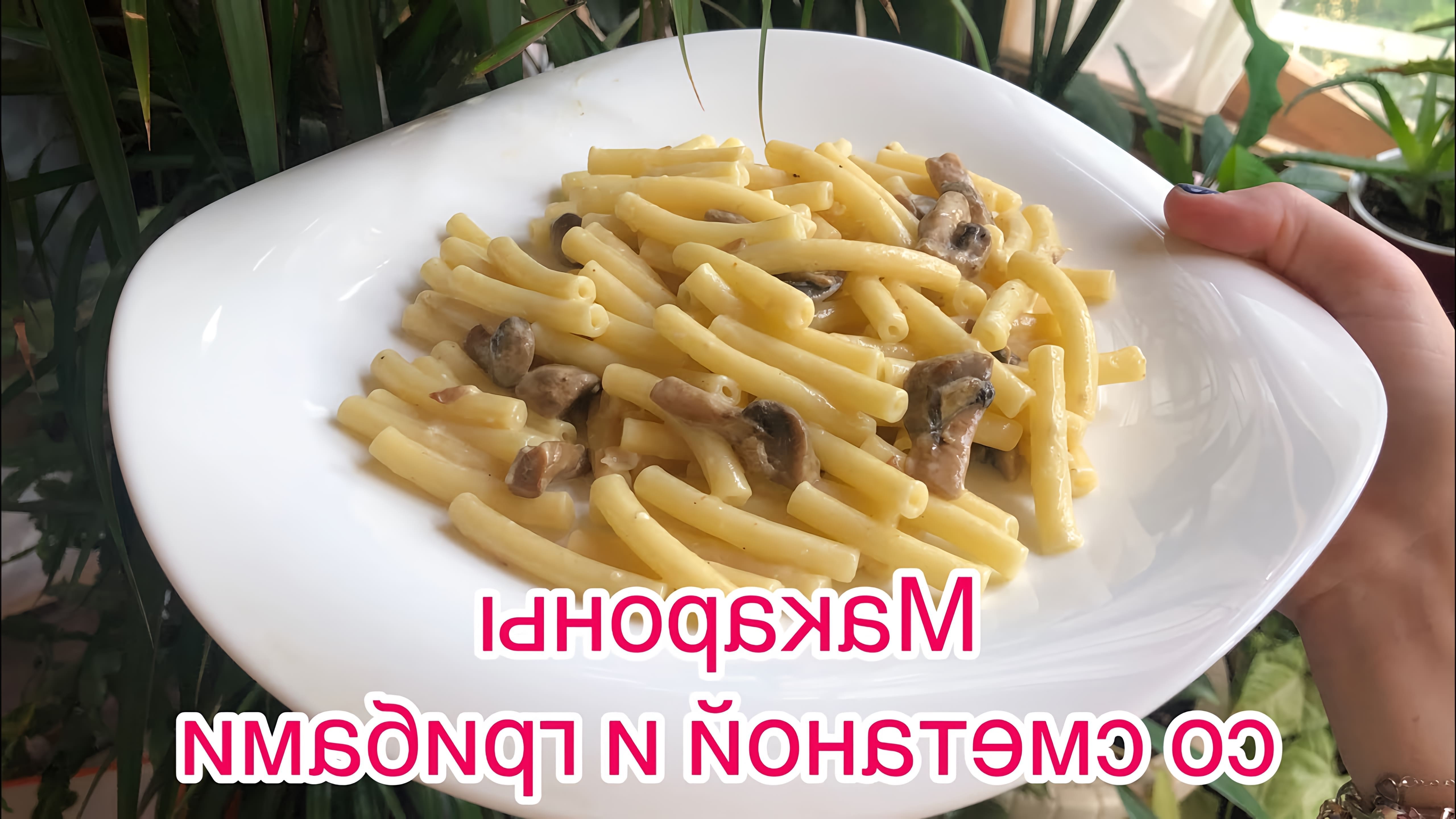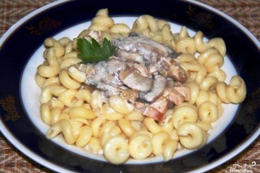 Макароны с грибами в сметане