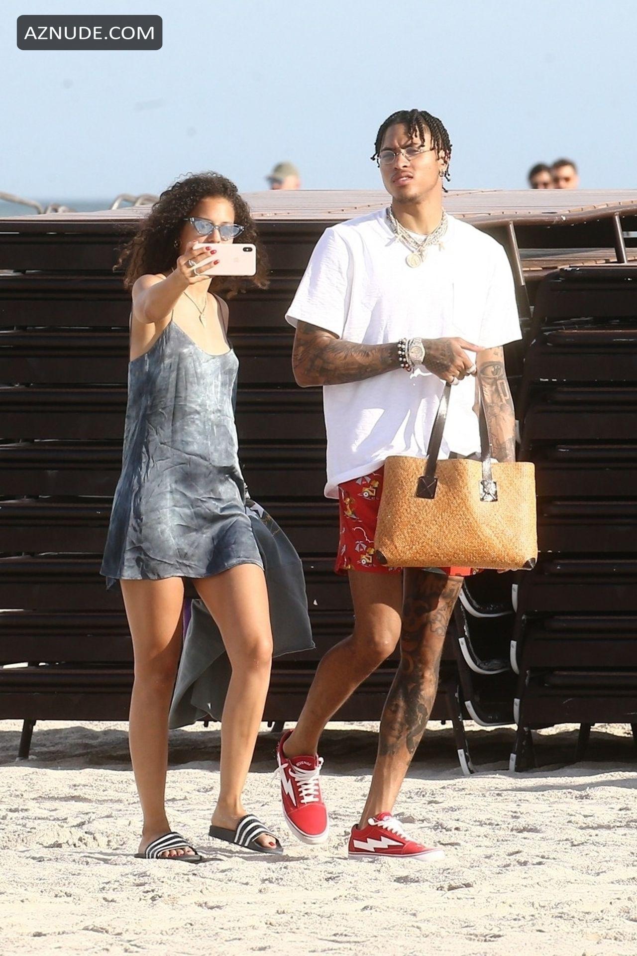 Loving Couple Make Their Romance near The Sea Beach