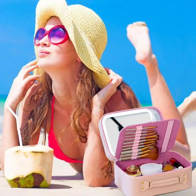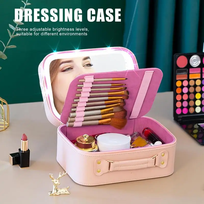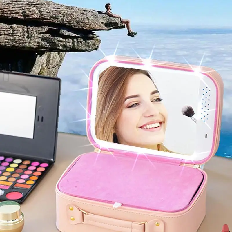 ObHPhnmqHere you can buy Makeup Box With Mirror Large Space Water Resistant Design Cosmetics Organizing Bag With LED Light for Jewelry Home Storage with free delivery to your post office.
